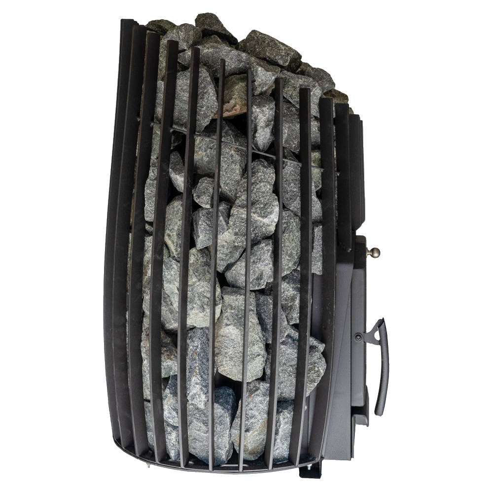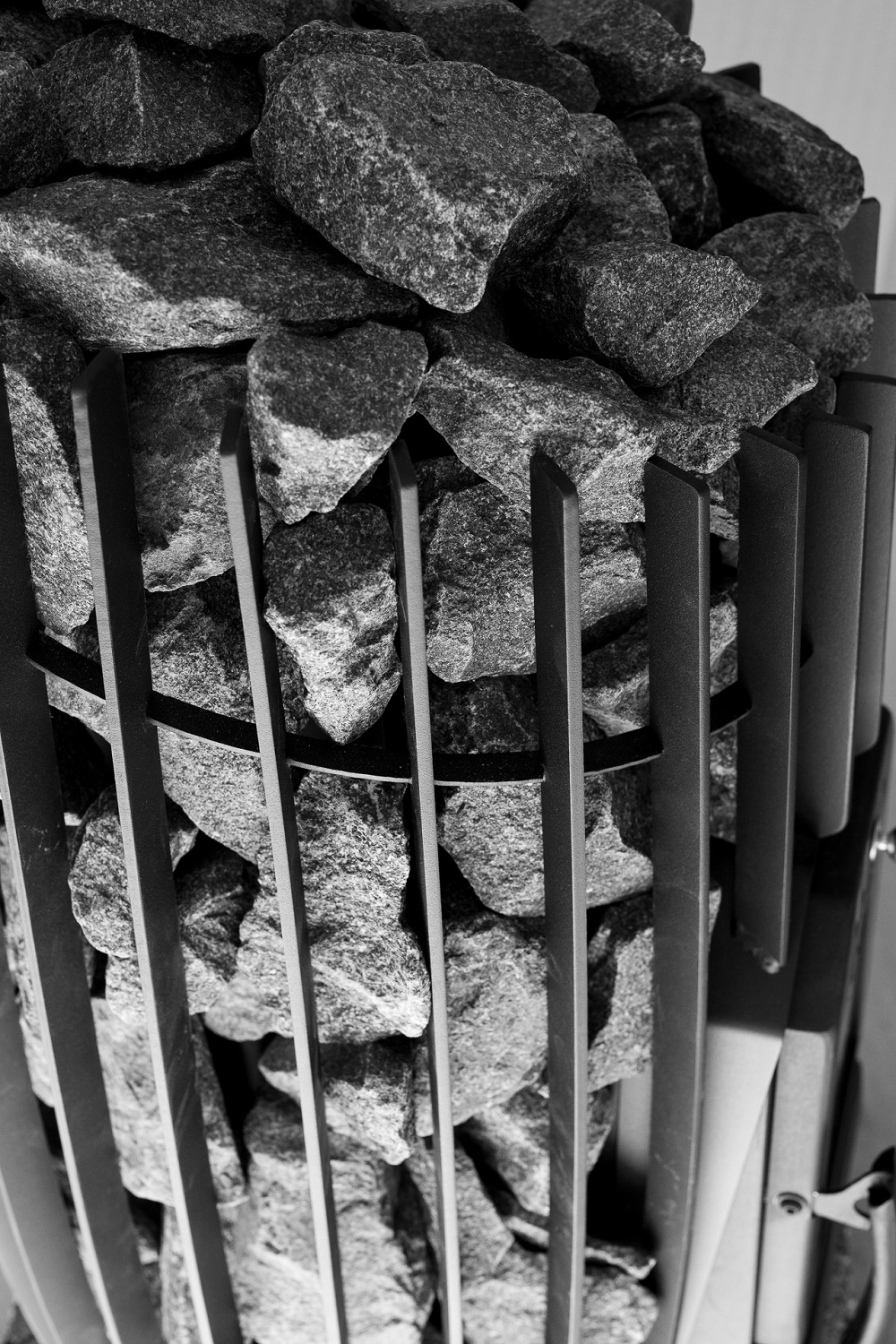 Für diesen Saunaofen sind die Steine in Grösse von 10-15 cm geeignet. Sie können zwischen den abgerundeten oder Schotter zu wählen oder sogar kombinieren (dh Sie können Schotter in der Mitte gesetzt und decken Sie sie mit abgerundeten Steinen).