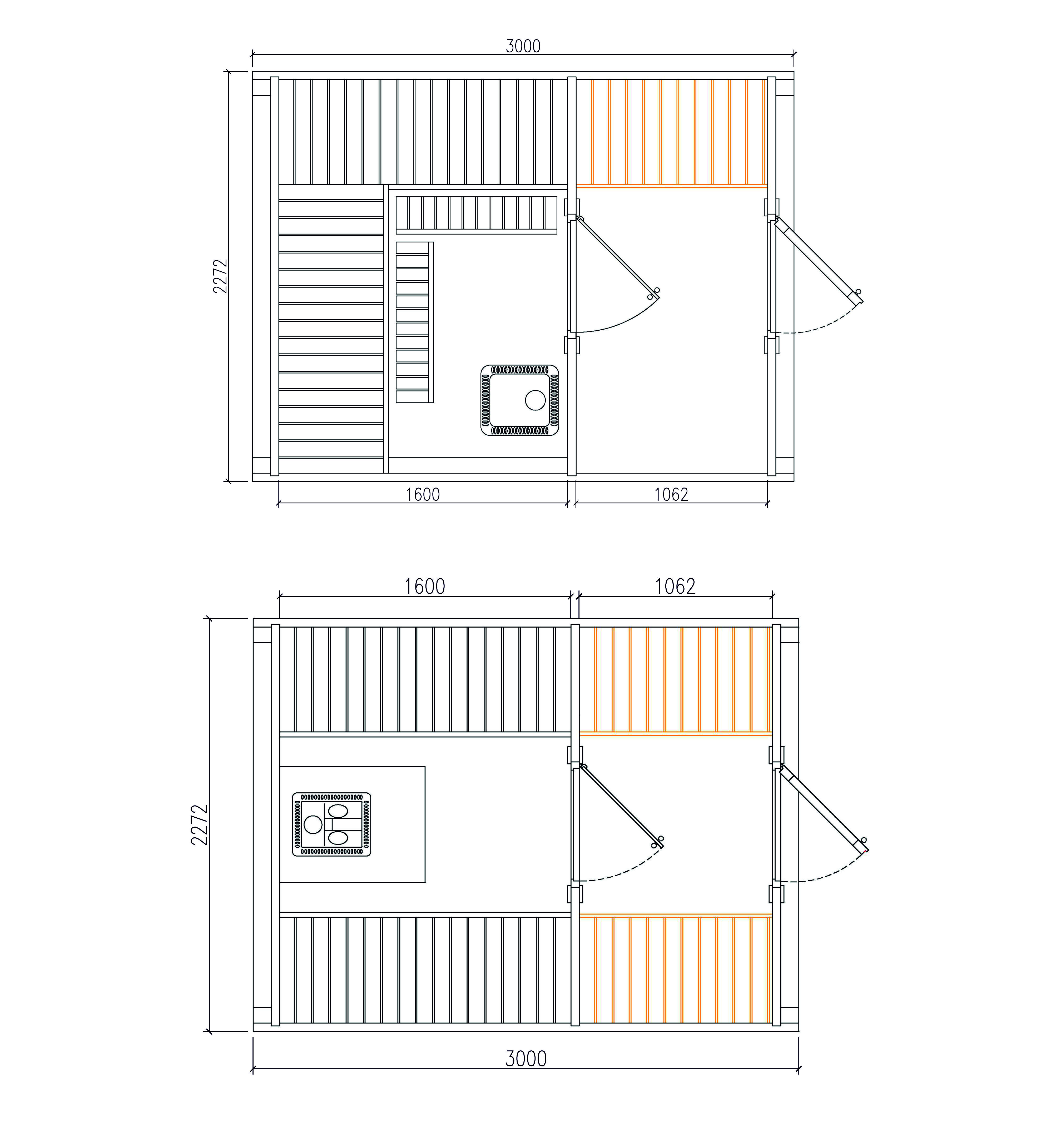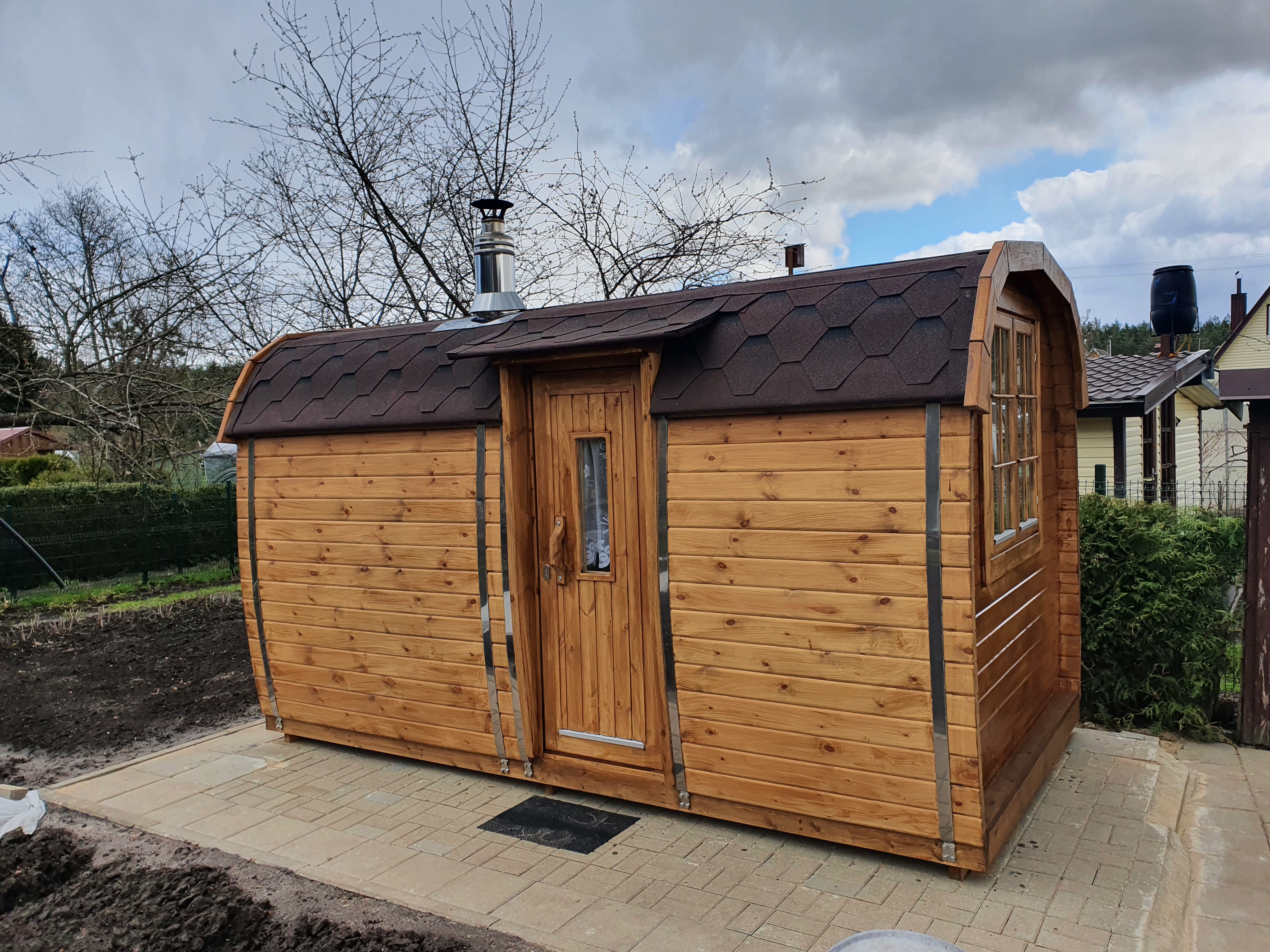- Öfen: Holzofen (nur gerade Bank) / Elektroofen