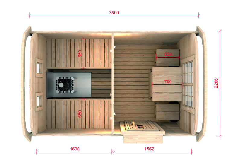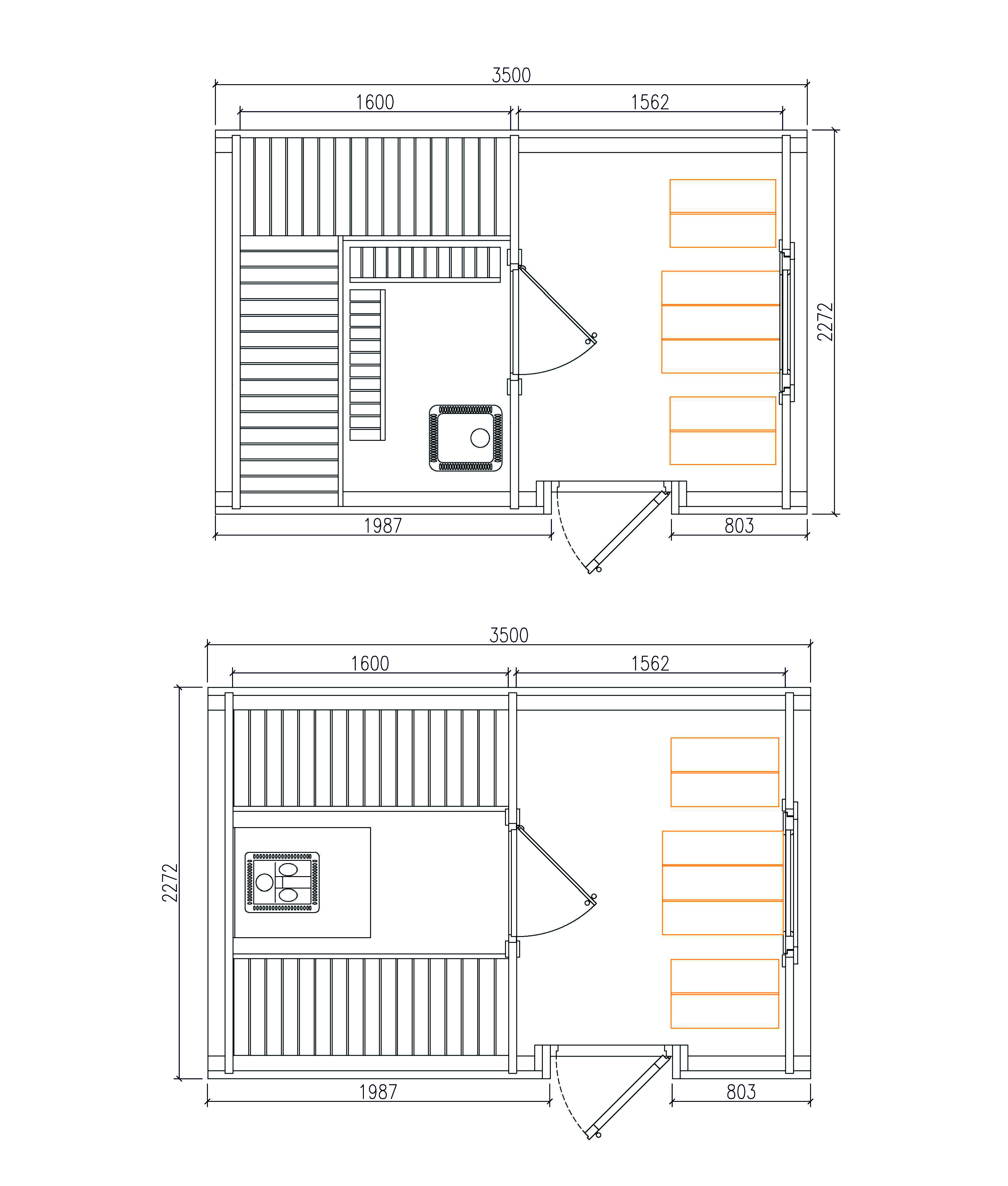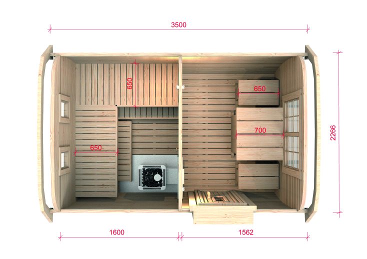- Öfen: Holzofen (nur gerade Bank) / Elektroofen