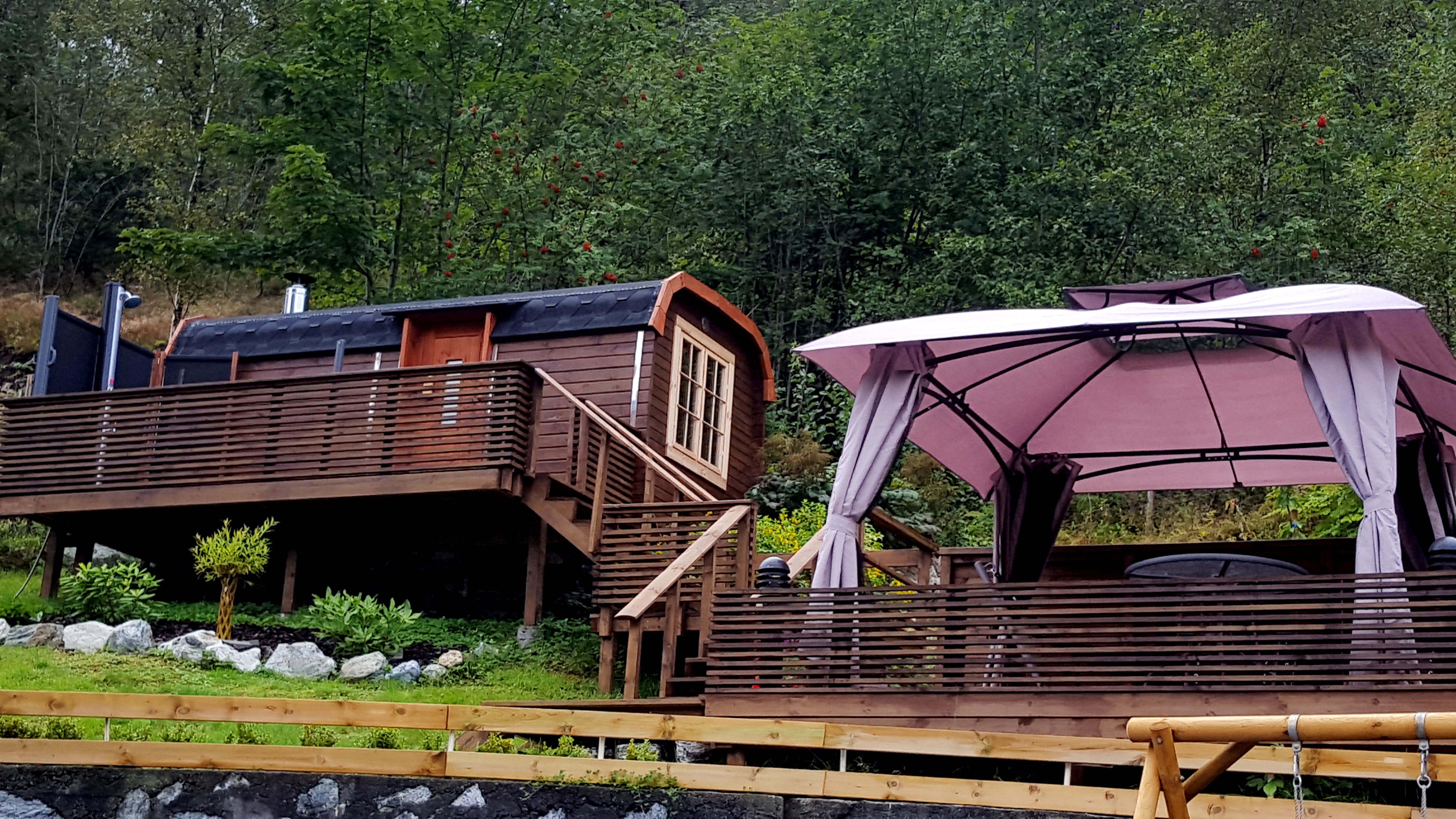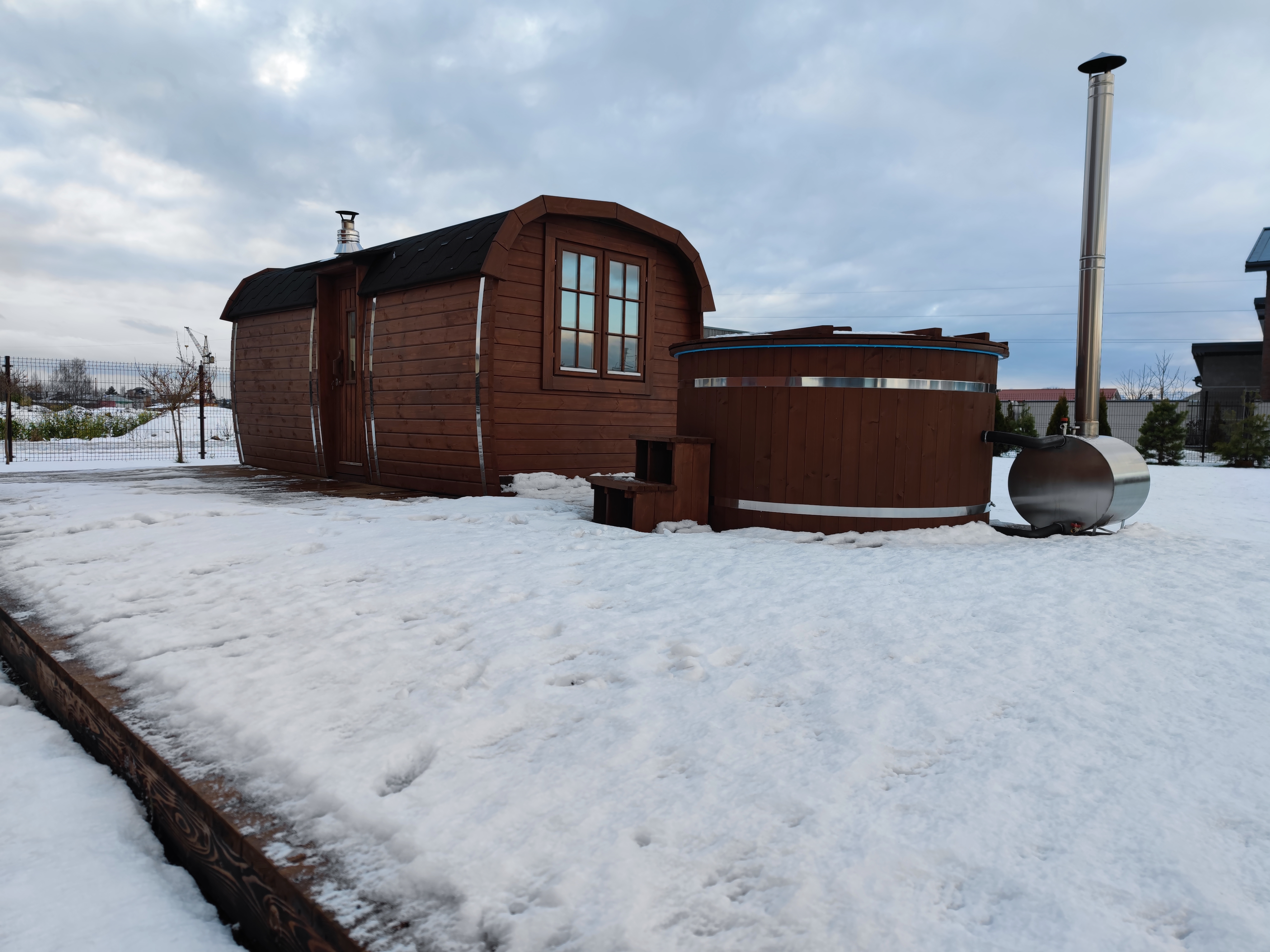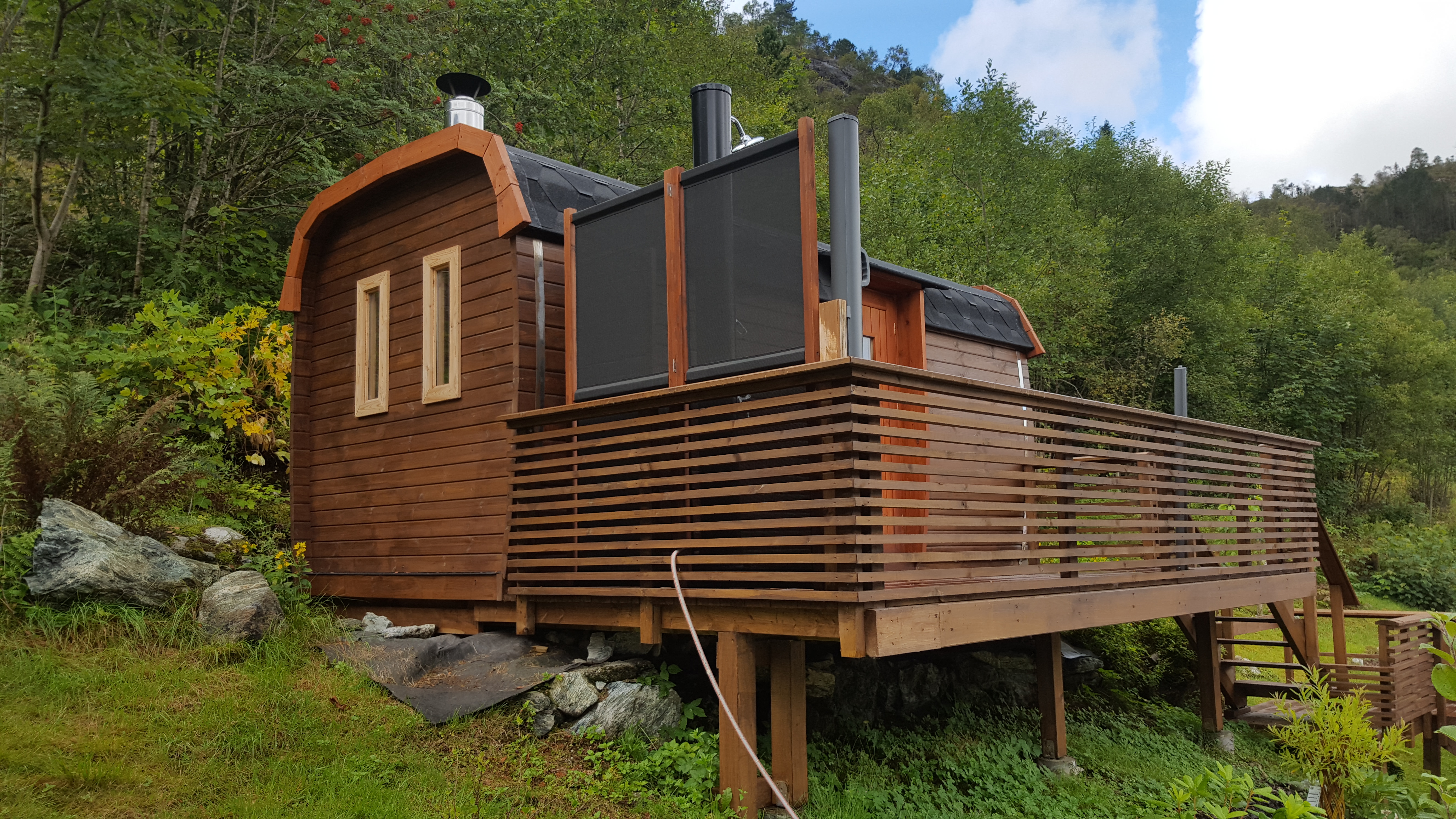 Spezifikationen: Länge: 590 cm Breite/Durchmesser: 230 cm Personen: 6 - 10 Holzarten: Pinie oder Thermoholz Wandstärke: 46 mm Türgröße Holztüre: 700 x 1800 mm Türgröße Glastüre: 620 x 1750 mm Layout: Gerade Bänke oder Eckbänke