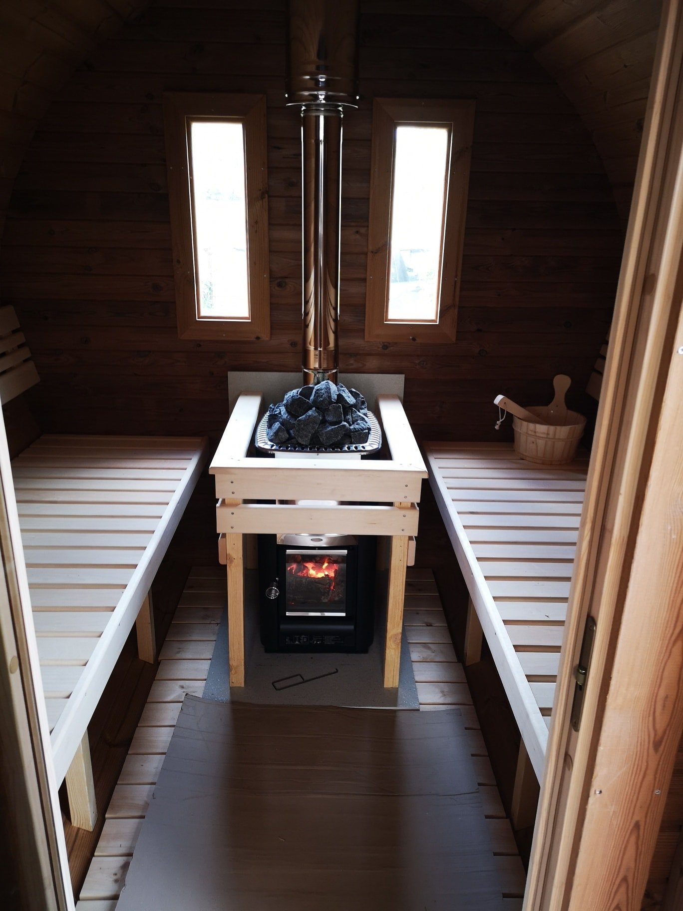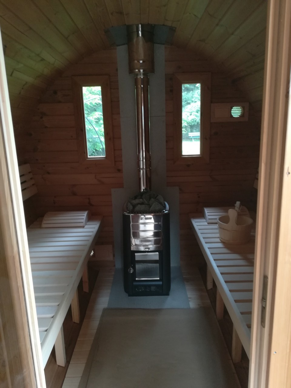 - Öfen: Holzofen (nur gerade Bank) / Elektroofen