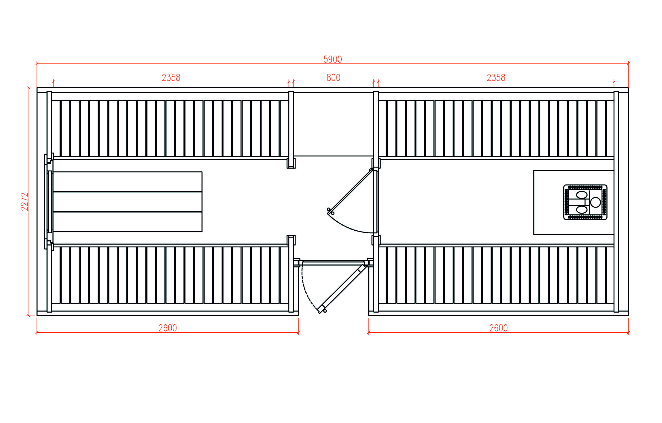 - Öfen: Holzofen (nur gerade Bank) / Elektroofen
