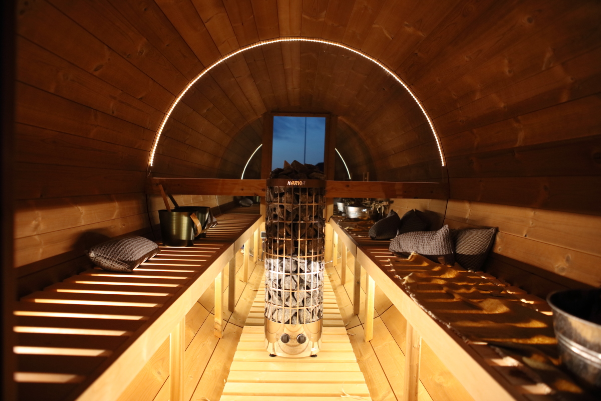 • Die LED-Beleuchtung für die Fasssauna ist Wasserfest