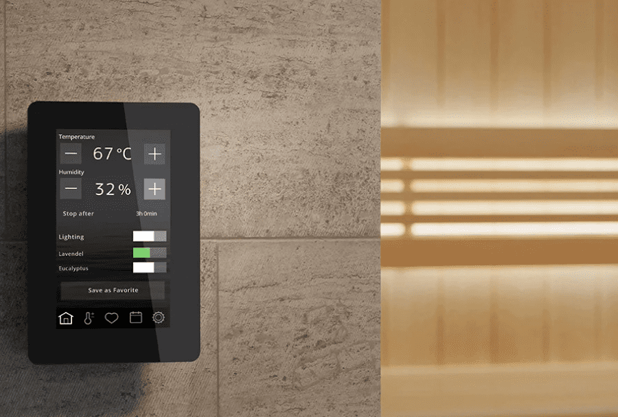 - Praktische App-Steuerung kombiniert mit einem intuitiven Bedienteil ermöglicht eine maßgeschneiderte Saunaeinstellung für individuelle Vorlieben