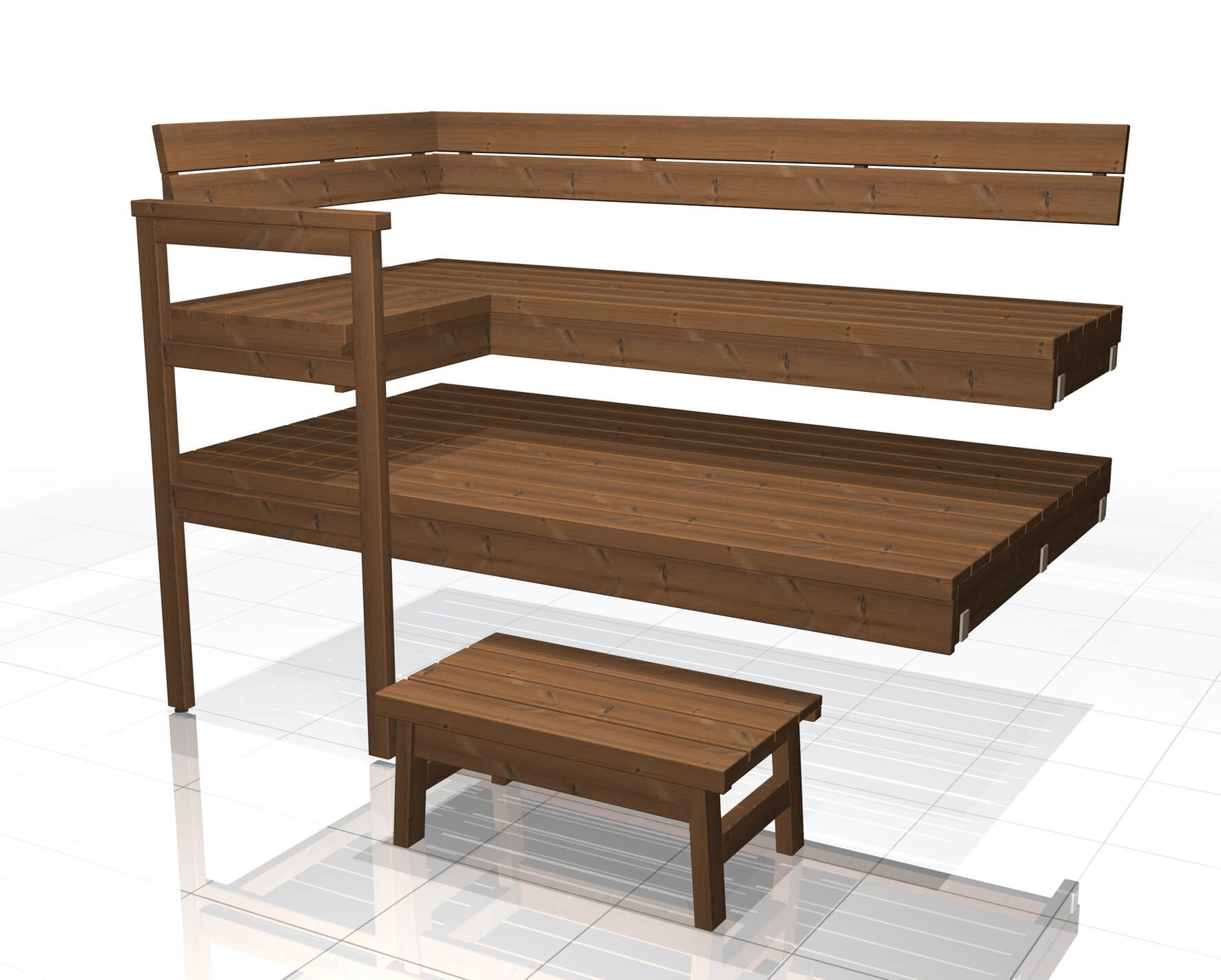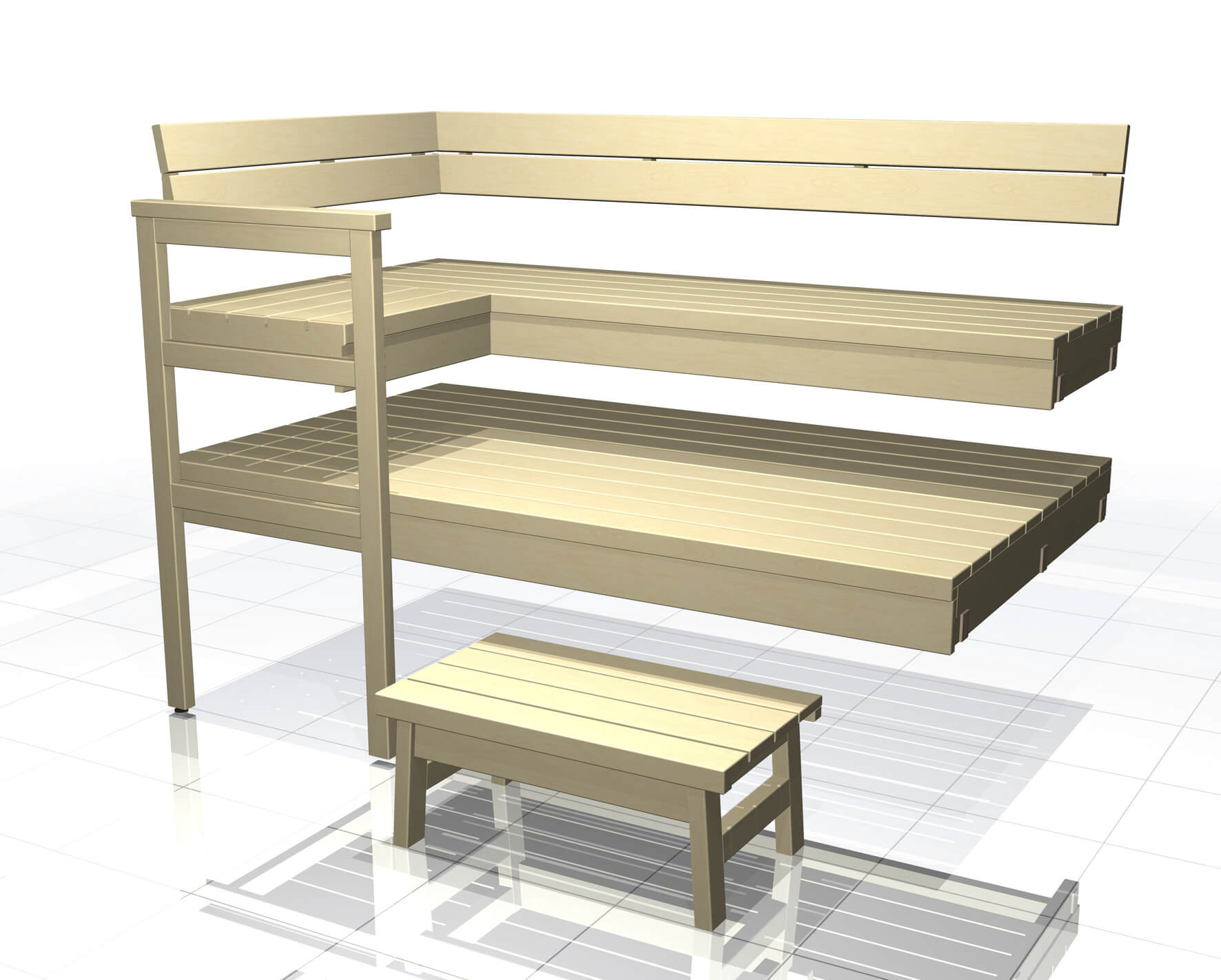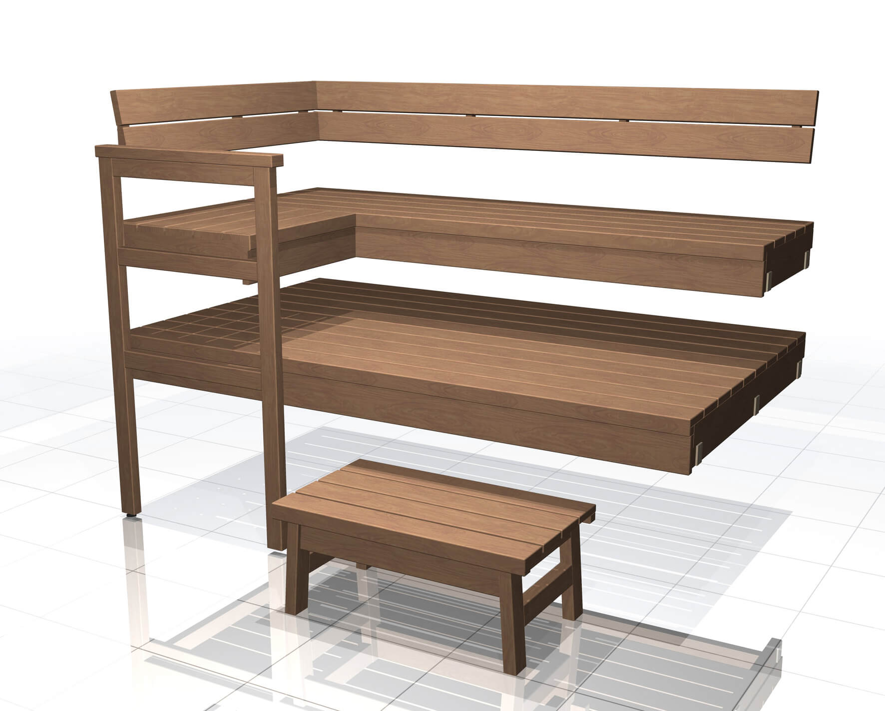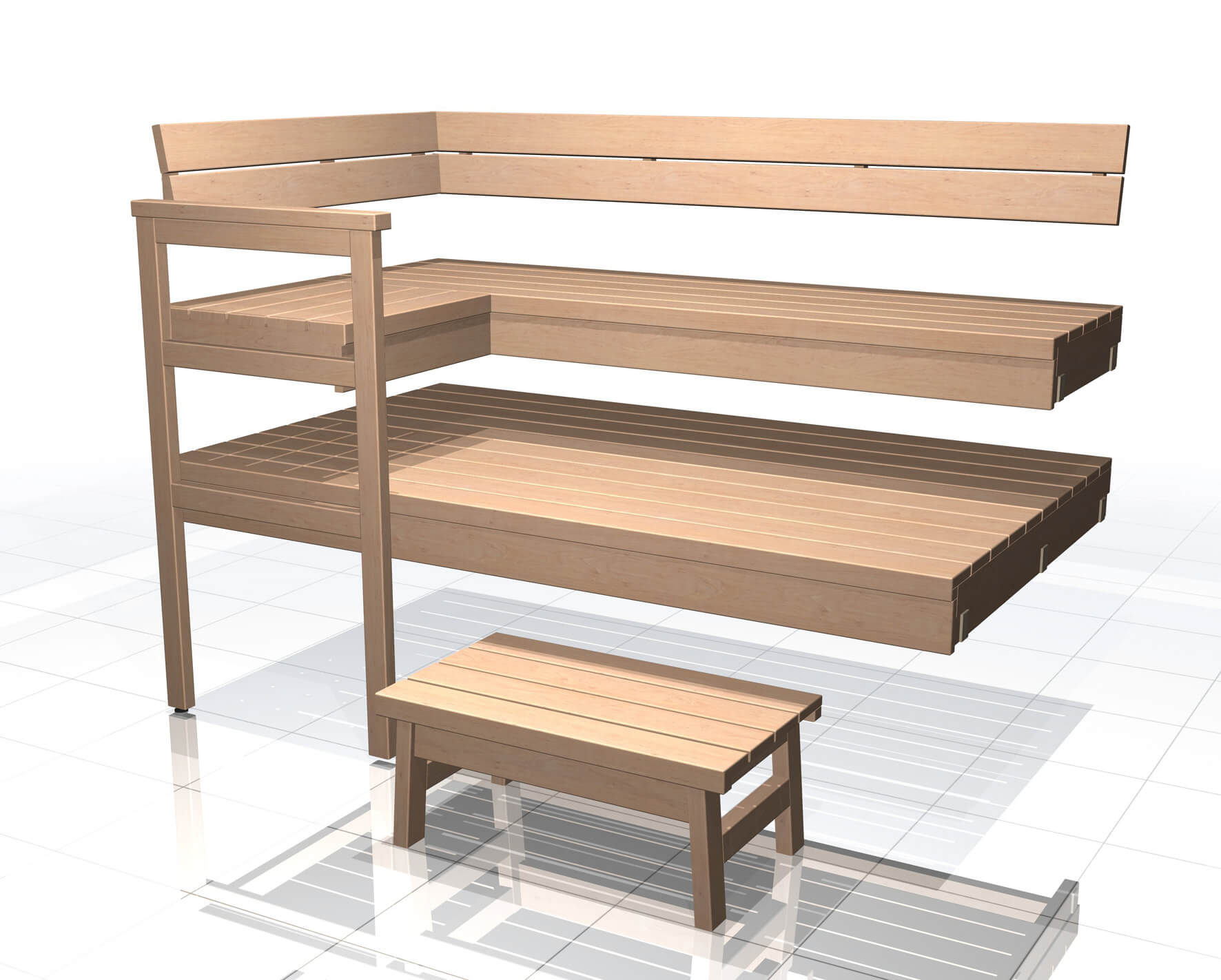 Die Harvia Scala Sauna-Inneneinrichtung ist eine etwas andere, geradlinige Sitzbank-Lösung für mittlere oder große Saunen. Das Scala Konzept basiert auf einer großflächigen, unteren Sitzbank, die als vereinende Ebene dient, und die in Längsrichtung verlaufenden Bretter der oberen Bank verleihen der Sauna einen äußerst modernen Look. Die Scala Sauna-Inneneinrichtung ist auch mit unterschiedlichen Sitzflächen erhältlich, die nach Wunsch auf der großflächigen unteren Bank platziert werden können. Sämtliche Sitzbank-Einzelteile sind aus wärmebehandeltem Espenholz oder wärmebehandeltem Kiefernholz gefertigt, jener warmen, rötlichen Farbe, die eine ruhige, traditionelle Saunaatmosphäre erzeugt. Sie können auch kühnere Kombinationen mit unterschiedlichen Holzfarben zusammenstellen, um einen völlig neuen und einzigartigen Look für Ihre Sauna zu erschaffen. Scala steht für den garantierten Geschmack und Stil von Harvia, der seit 1950 von Generation zu Generation weitergegeben wird.