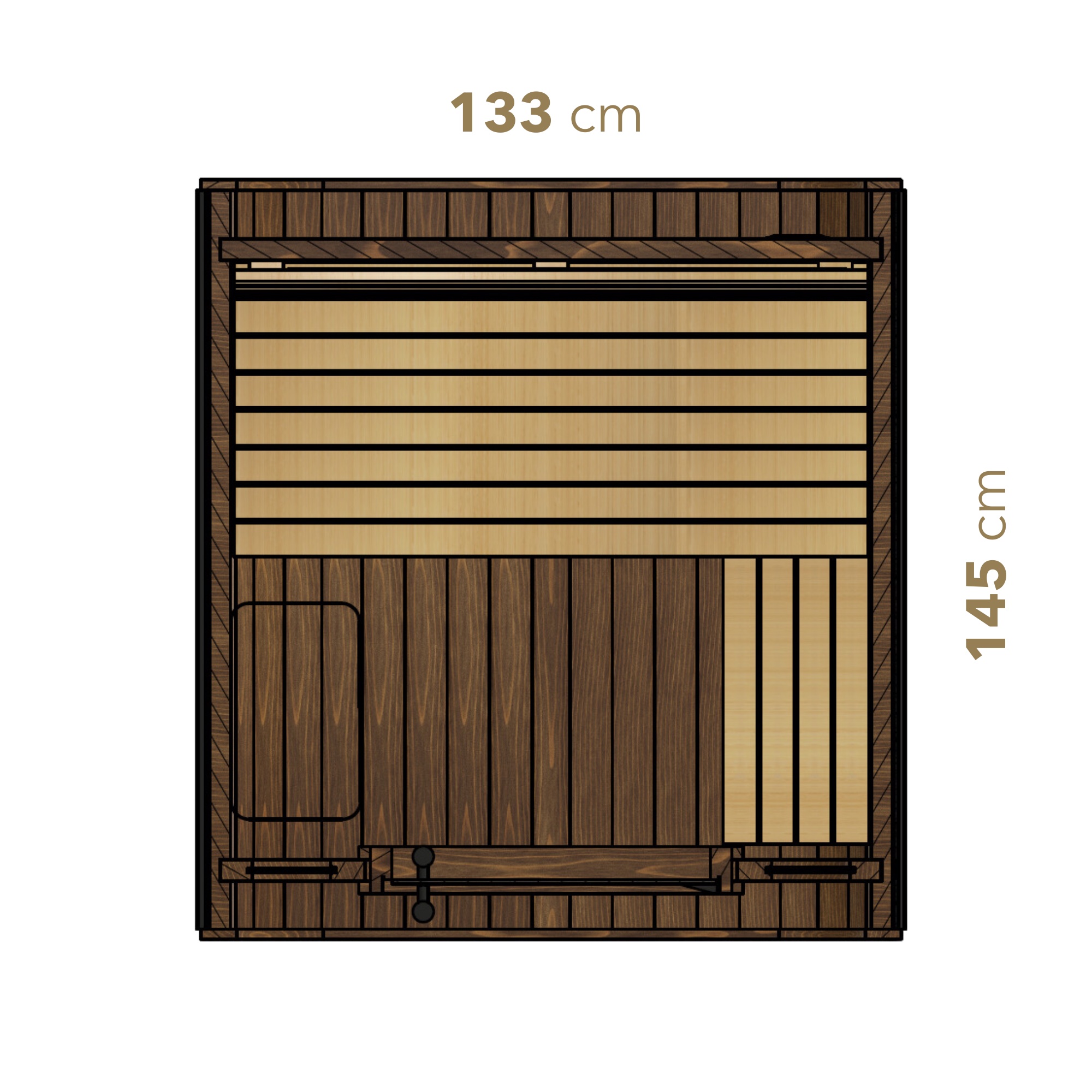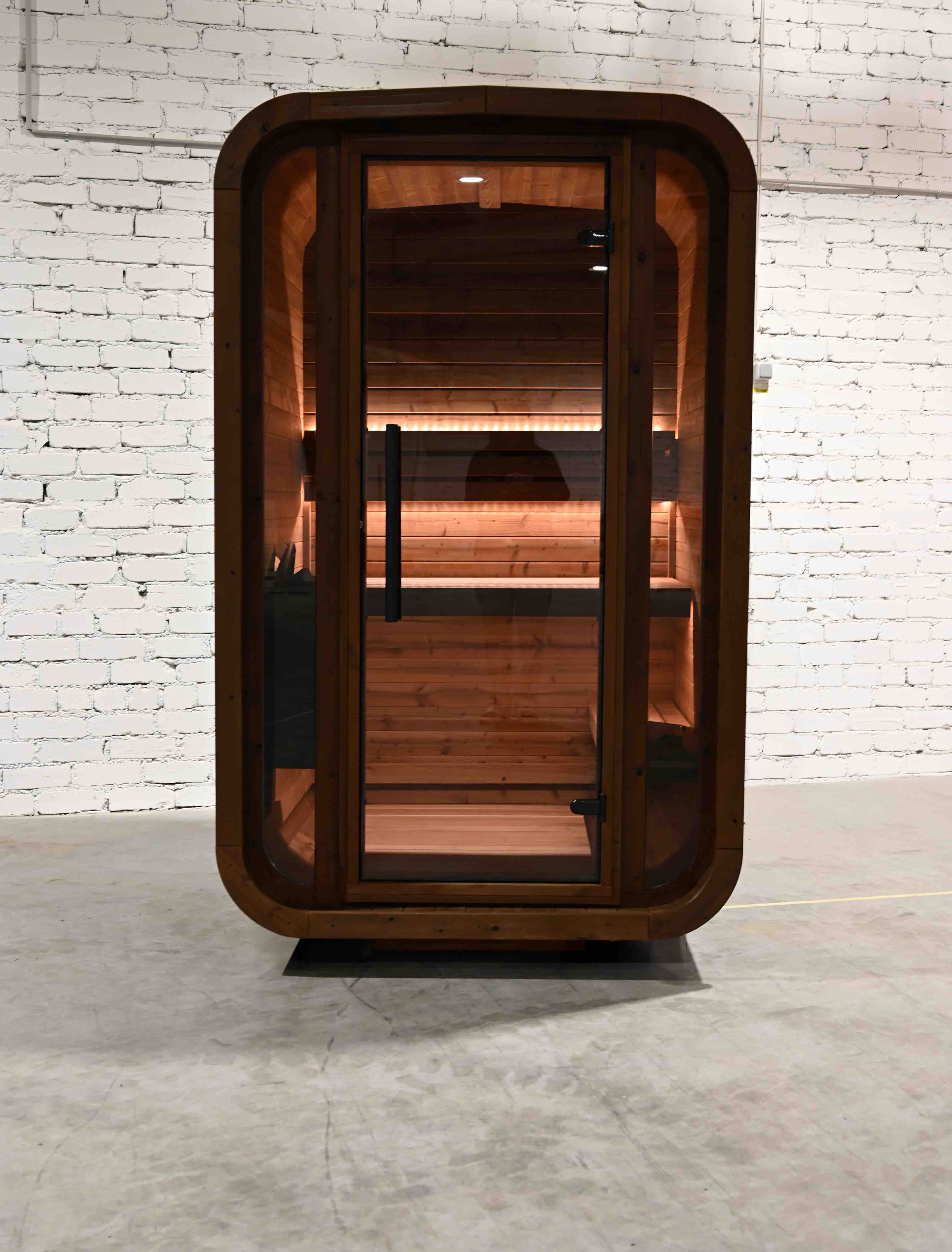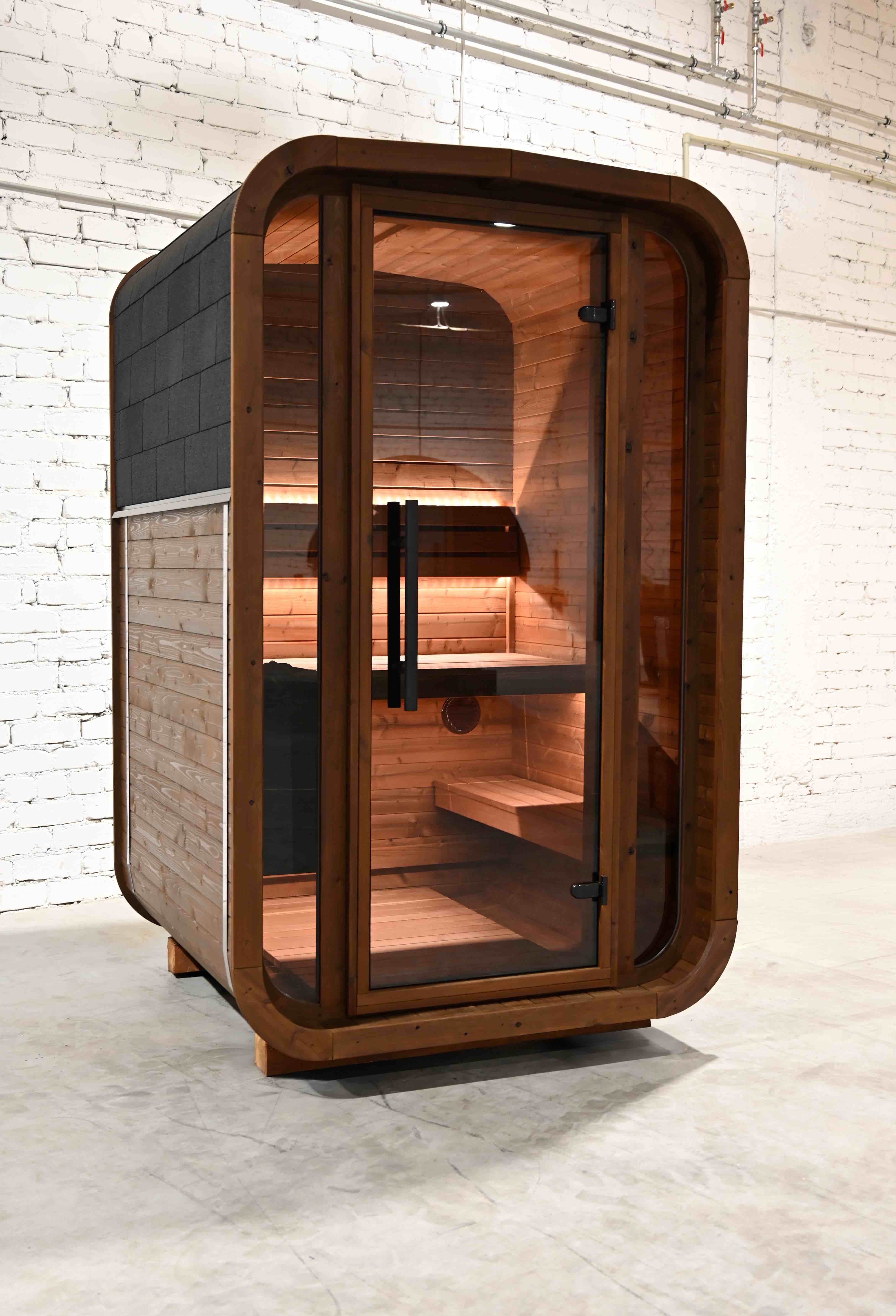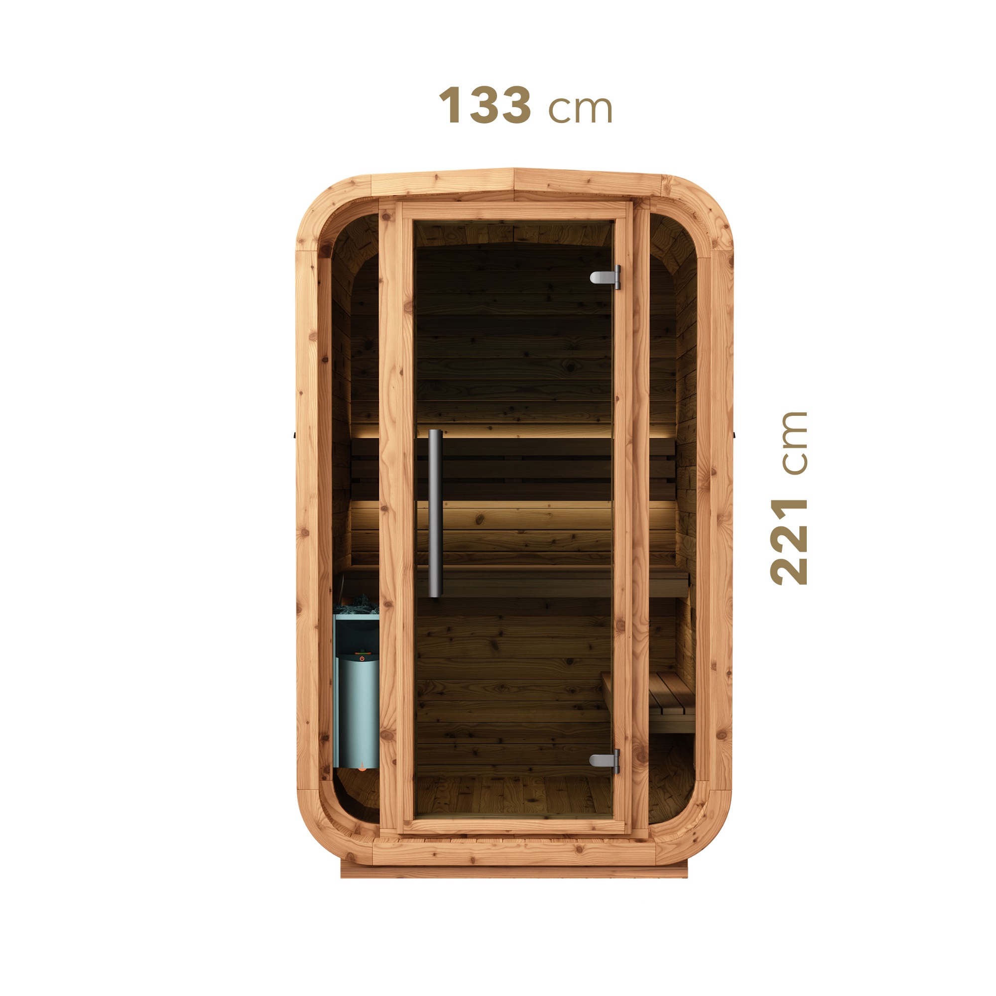 Solas schlanke, quadratische Form mit abgerundeten Kanten zeigt eine moderne Ästhetik, die jede Außenumgebung ergänzt. Das Design sieht nicht nur großartig aus, sondern sorgt auch für eine gleichmäßige Wärmeverteilung in der Sauna.