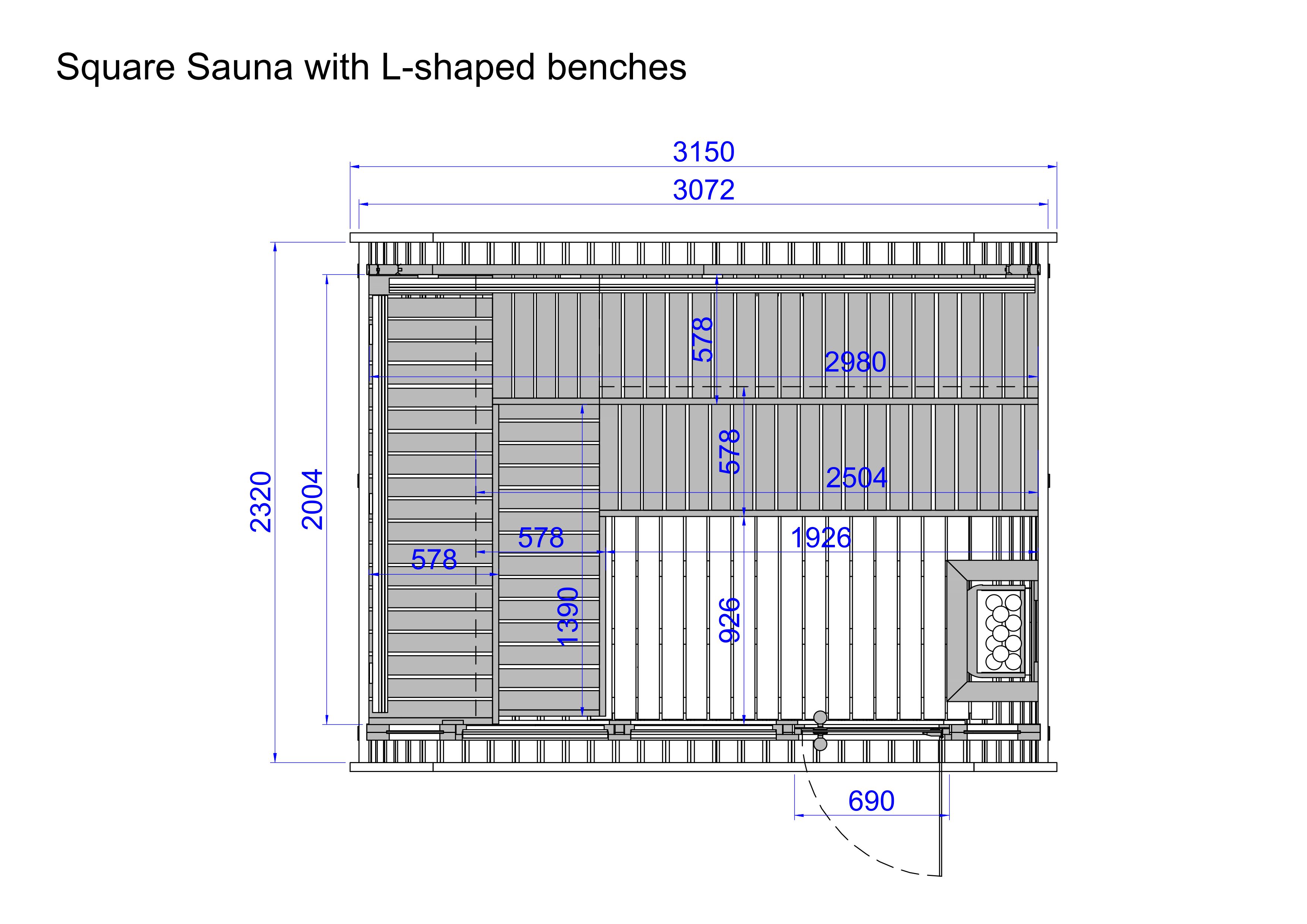Square Sauna 3,0 x 2,3 m