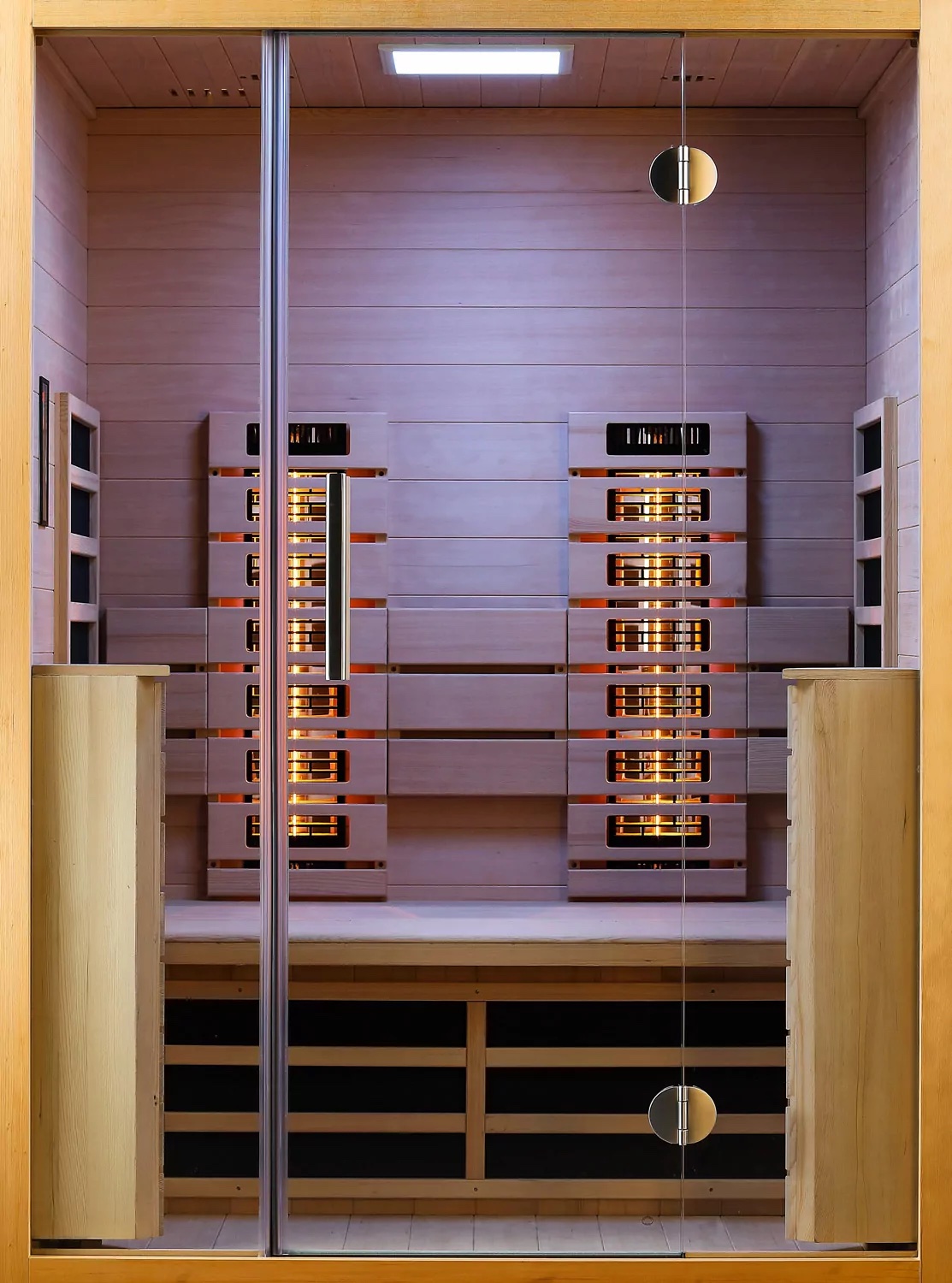 • Option: zusätzliche Sunlight-Infrarot-Strahler links/rechts neben Tür nachrüstbar (2 x 400 Watt)