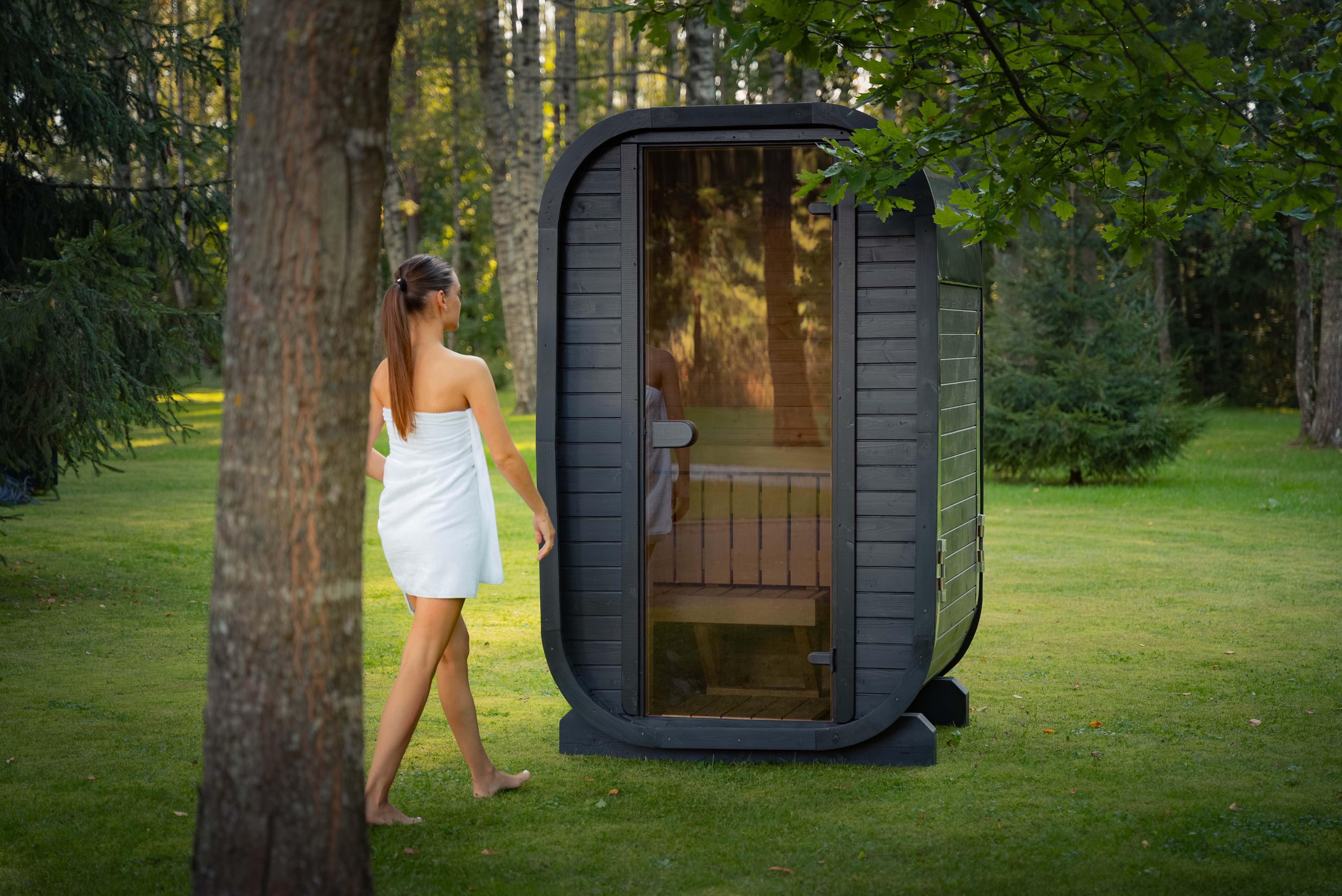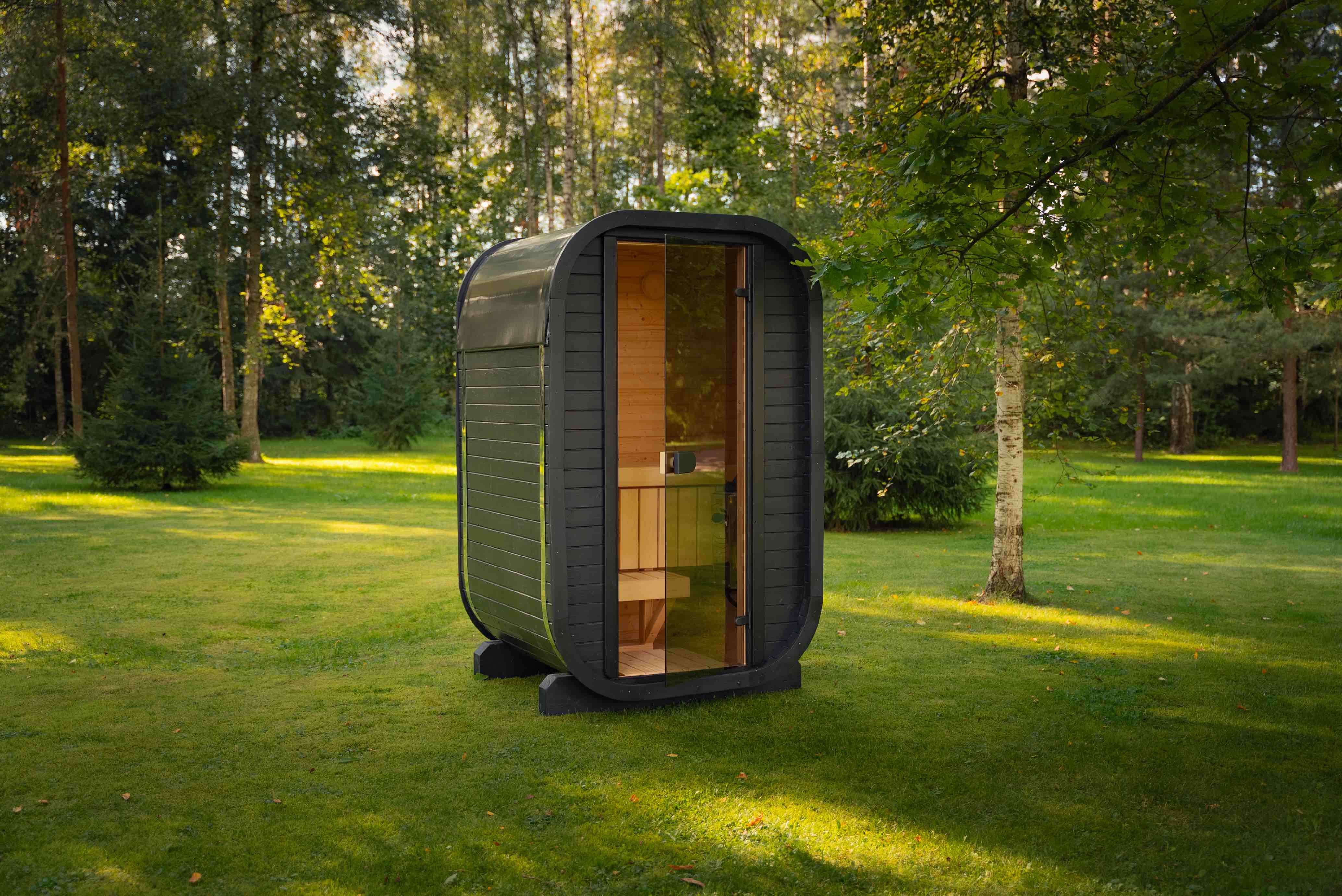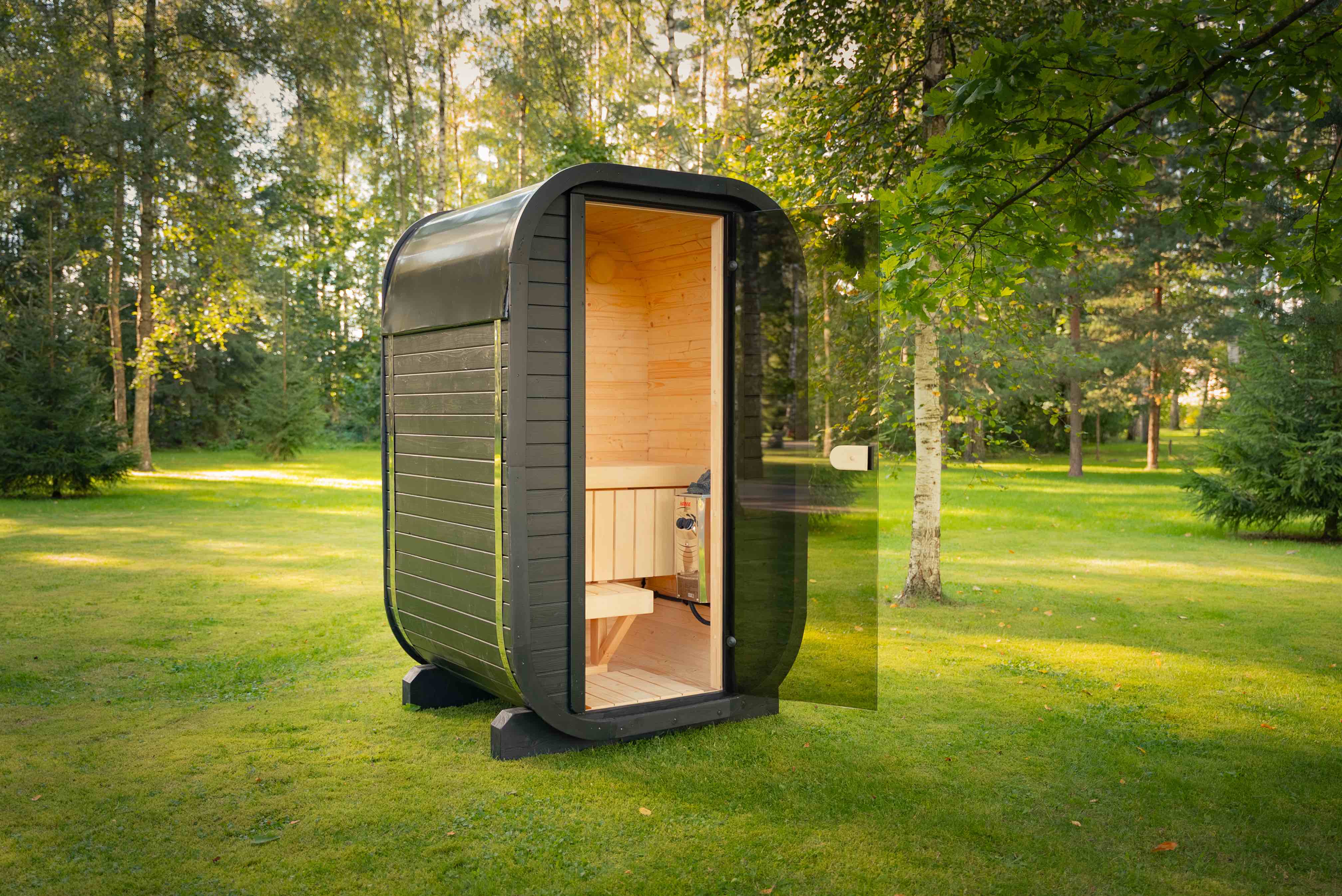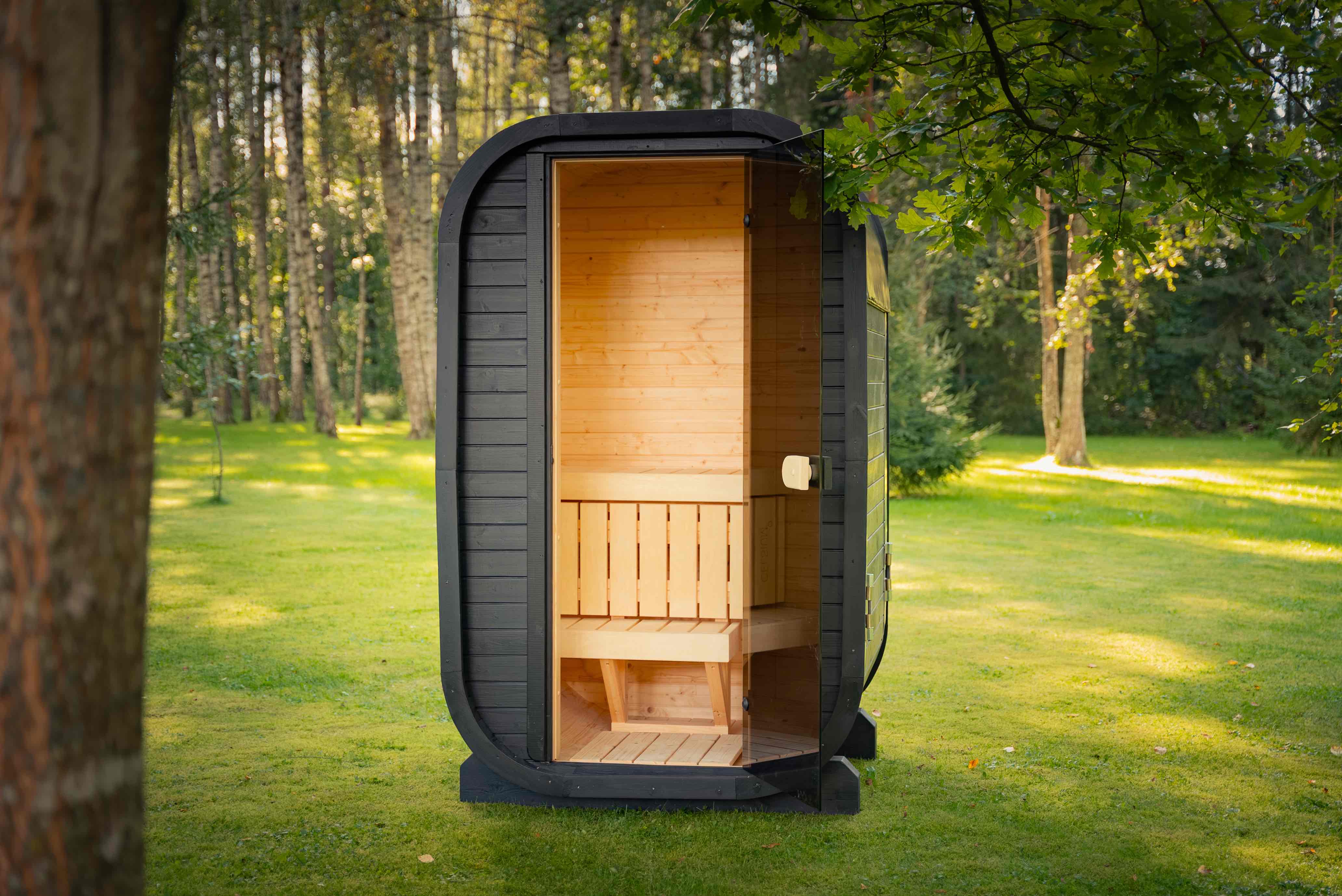 Ula Micro ist eine kleine, elegante Sauna für zwei Personen – ideal für Balkone, Dachterrassen oder kompakte Außenbereiche. Mit ihrem abgerundeten Design und der natürlichen Holzoberfläche bietet sie auf nur 1,23 x 1,32 m einen gemütlichen Wellness-Rückzugsort, bei einer Höhe von 2,32 m (mit Glasfront) oder 2,17 m (mit Holzfront). Eine smarte Lösung für das urbane Leben, ohne auf Komfort zu verzichten.