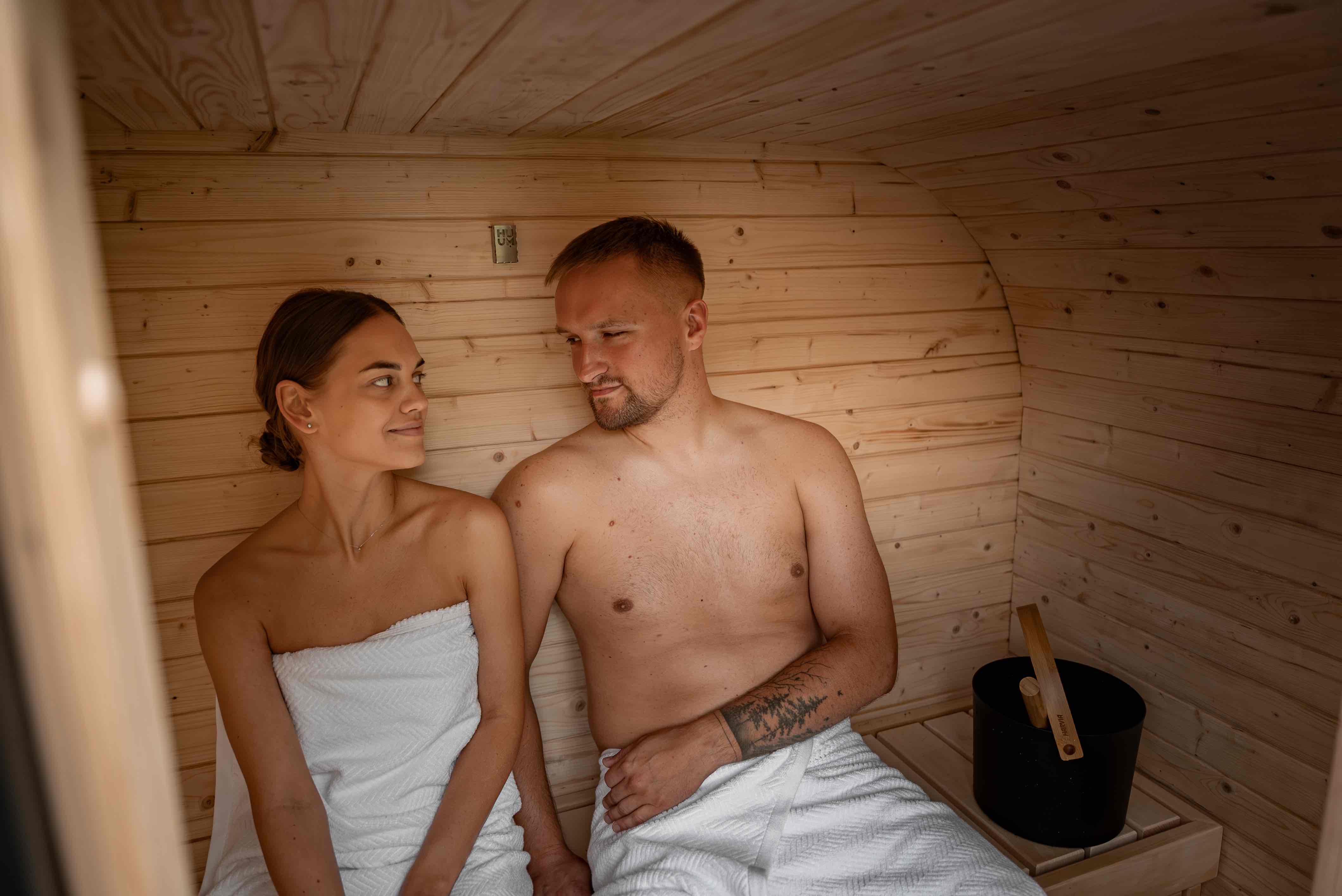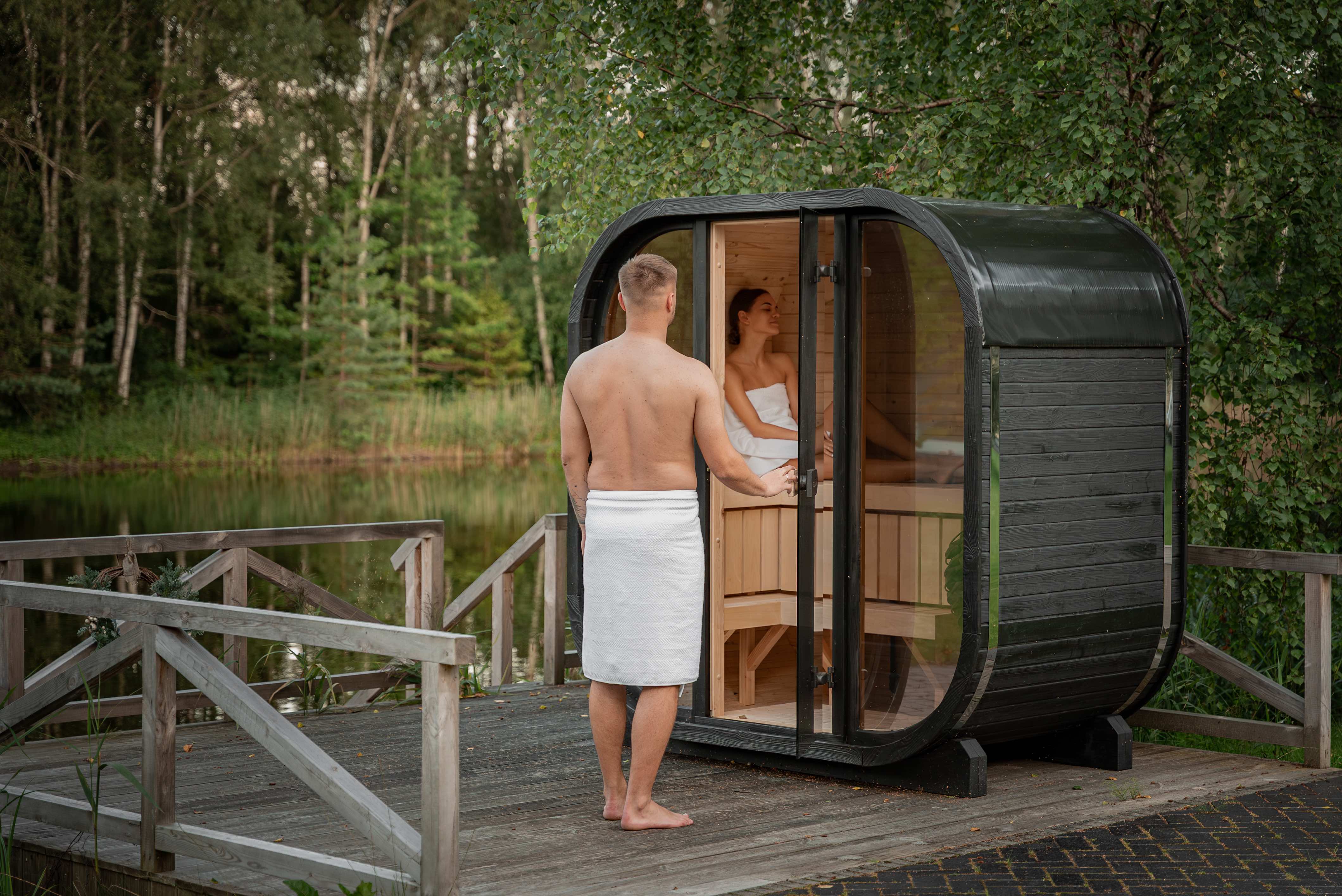 Passen Sie das Erscheinungsbild Ihrer Sauna an Ihren individuellen Stil an. Wählen Sie zwischen einer natürlich geölten Oberfläche, die die Holzmaserung betont, oder einer lackierten Außenseite für einen markanten, eleganten Look. Jede Variante ist behandelt, um Witterungseinflüssen standzuhalten und zeitlose Ästhetik zu bieten.